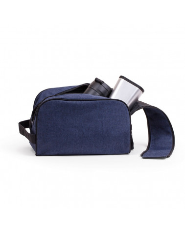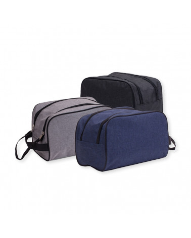 Nécessaire em nylon com alça lateral e forramento interno em poliéster.