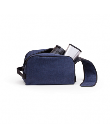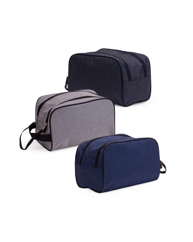 Nécessaire em nylon com alça lateral e forramento interno em poliéster.
