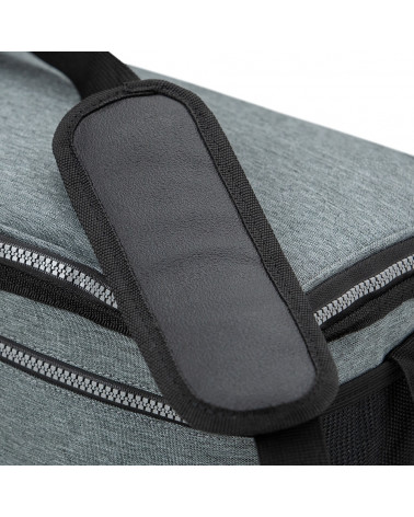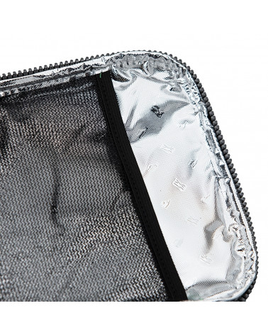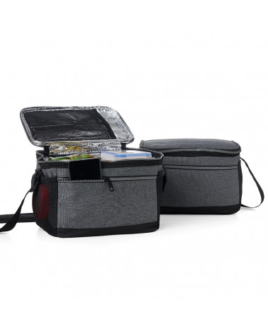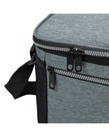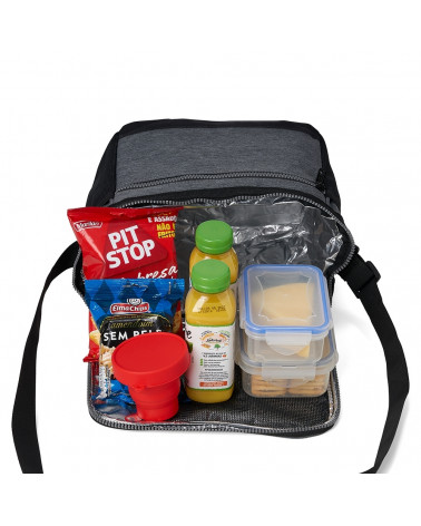 Bolsa térmica em nylon com capacidade para 7 litros.