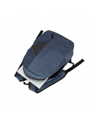 Mochila com compartimento para notebook até 14 polegadas. Contém um compartimento grande, compartimento frontal e bolsos laterais. Alça de mão em nylon e alças para as costas ajustáveis.
