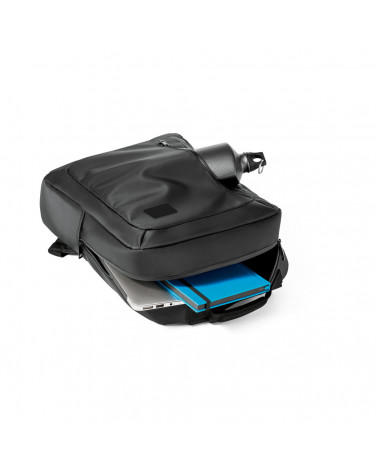 Mochila para notebook em 900D e c. sintético com 2 compartimentos principais e bolso frontal.