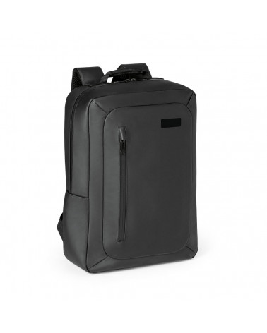 Mochila para notebook em poliéster 600D impermeável com compartimento principal almofadado para notebook até 15.6''. Bolso frontal e zípers impermeáveis.