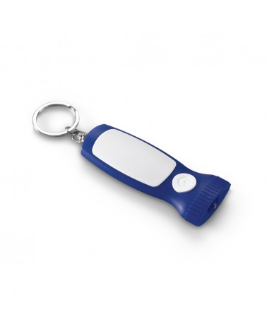 Chaveiro plástico com LED, incluso 3 pilhas. possui um lado para personalização.