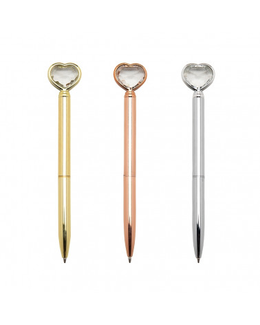 ESCRITAS Caneta Metal Coração Diamante ESC667 R$ 0,00 Caneta metálica com carga esferográfica azul. View DOURADO/CHAMPAGNE