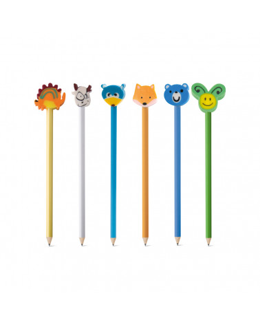 Caixa cilíndrica em cartão com 6 mini lápis de cor.