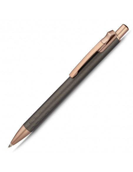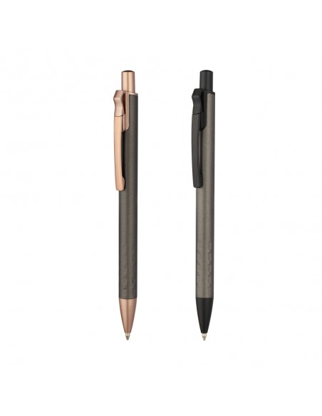 Caneta alumínio, aciona por clique. Acompanha estojo.