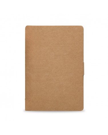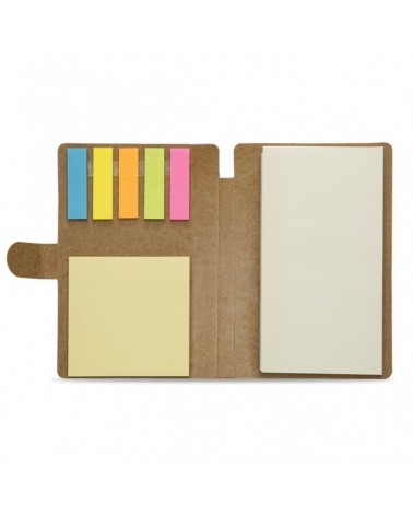 Bloco de anotações em papelão com páginas destacáveis.