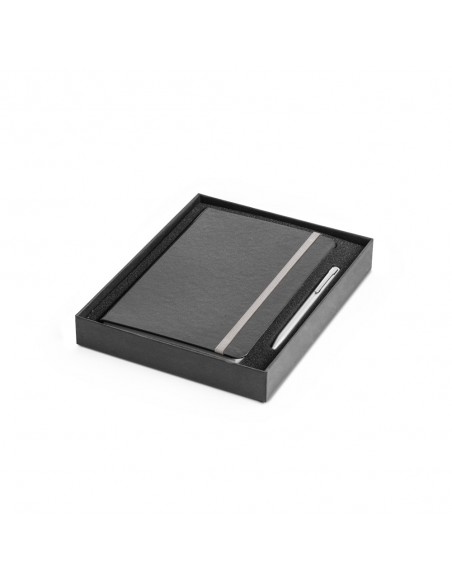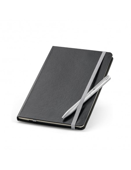Caderno em papel craft. Acompanha caneta esferográfica.