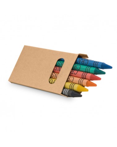 Caixa cilíndrica em cartão com 6 mini lápis de cor.