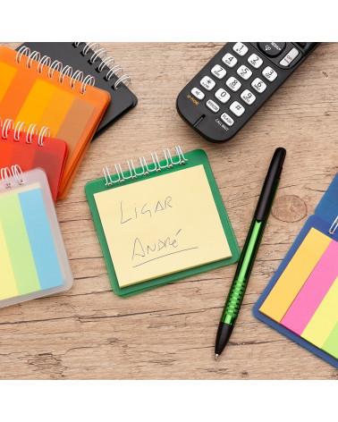 Bloco de anotações em plástico.