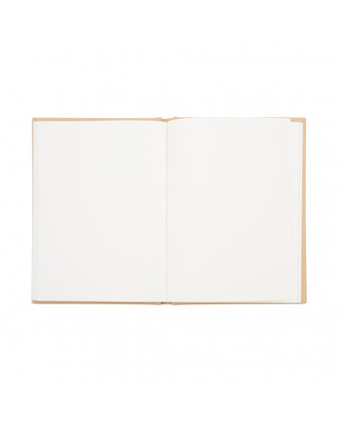 Bloco de Anotações Ecológico, material em kraft. Frente e verso liso com fita elástica para fechar. Contém aproximadamente 80 folhas amareladas sem pauta.