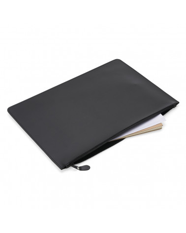 Pasta envelope bidins. A pasta contém fecho de ziper com detalhe de couro sintético na parte superior.