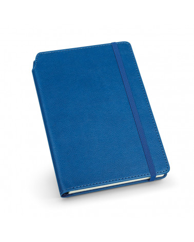 Caderno A5 com capa dura em PU térmico e 80 folhas pautadas.