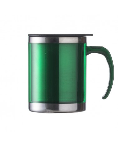 Caneca plástica 400 ml com tampa e alça plástica e revestimento interno em inox.
