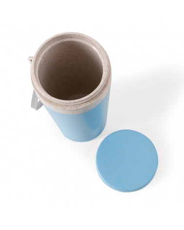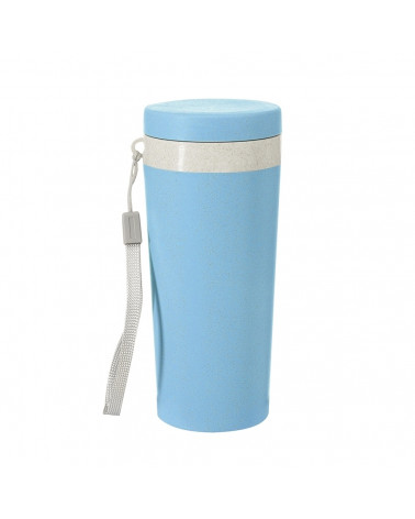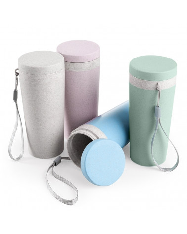 Copo fibra de bambu 350ml com parede dupla e alça. Copo produzido em Polipropileno livre de BPA, possui uma tampa de vedação rosqueável e alça de nylon (removível) para transporte. Conserva a temperatura interna durante um período de 1 à 2 horas, mas não dispõe de isolamento térmico. O copo pode ser levado a lava-louças, geladeiras e micro-ondas.