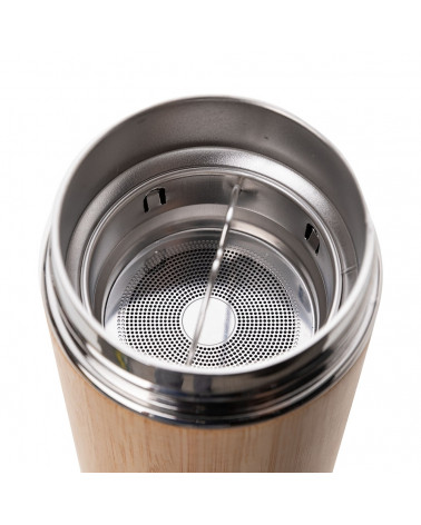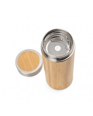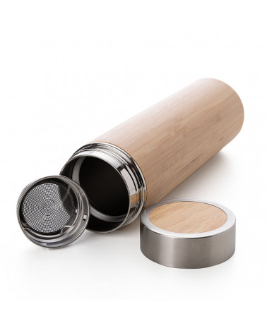 Garrafa de bambu e inox 400ml com parede dupla e infusor.