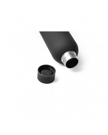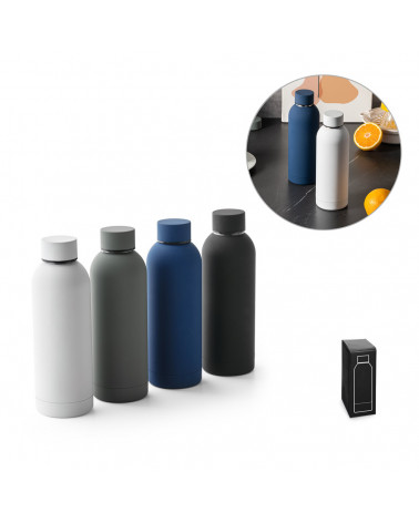 Garrafa em aço inox com parede dupla, para sublimação. Tampa com sistema de vácuo. Capacidade até 500ml. Mantém as bebidas quentes por 12h e frias por 24h. Food grade. Fornecida em caixa. ø70 x 245 mm.