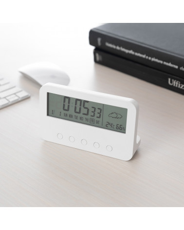 Relógio digital com alarme. Compartimento para 2 pilhas AAA (não acompanha).