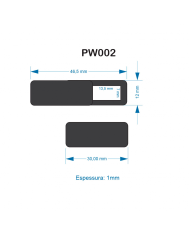 Protetor com abertura para instalar sobre a câmera de telefone celular, tablet, notebook, etc. Fixação via adesivo, Material plástico.