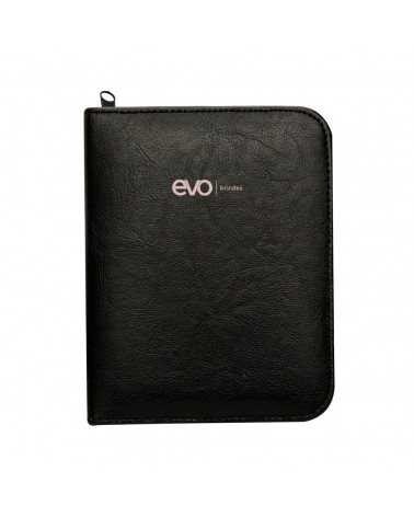 Kit masculino 12 peças em estojo de couro sintético, parte interna revestida com plástico em relevo e elástico para fixação dos itens.