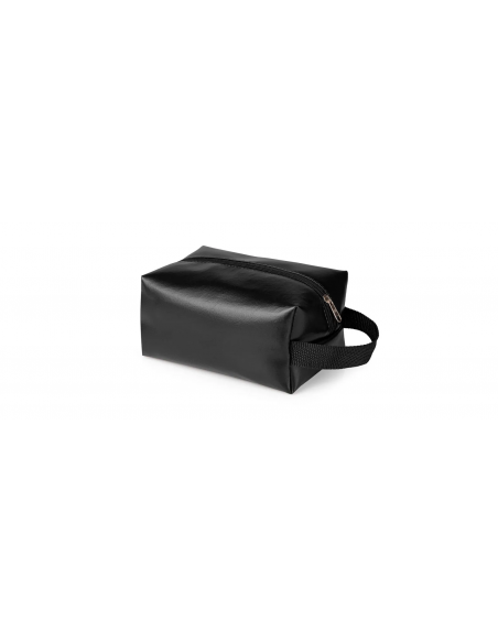 Necessaire em couro sintético e nylon 70 preto, forro na parte interna e alça lateral, Gravação frontal na opções: serigrafia e plaquinha.