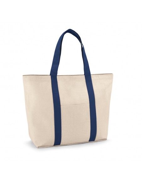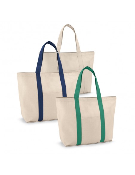 Sacola 100% algodão canvas (280 g/m²) com bolso frontal e bolso interior com zíper. A sacola contém fecho magnético e alças de 60 cm. 530 x 380 x 170 mm. Desenvolvida para empresas comprometidas com a sustentabilidade e a responsabilidade ambiental.