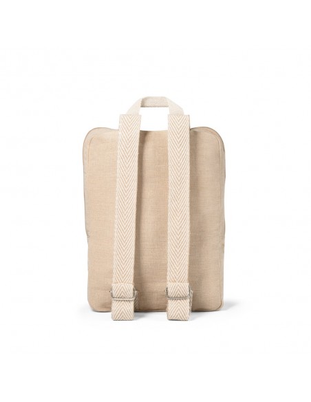 Mochila em juco (275 g/m²) com um compartimento principal e bolso frontal com fecho. Pega em webbing de algodão no topo e alças ajustáveis em algodão bicolor.