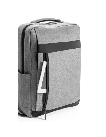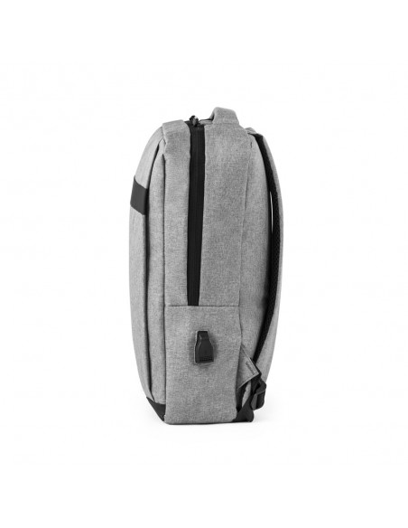 Mochila para notebook em 300D melange. Inclui 1 compartimento principal com bolso interior forrado compatível com computador até 15,6" e diversos bolsos multifuncionais. A mochila tem 2 bolsos frontais, 1 lateral e entrada USB. A parte posterior e alças são almofadadas.