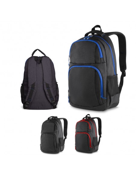 Mochila poliester para notebook com detalhes em nylon e neoprene.