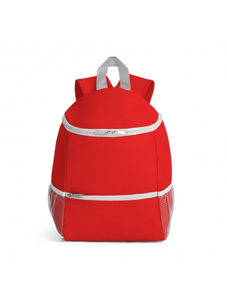 Mochila térmica de poliéster 15 litros com dois compartimentos e bolsos laterais em malha.