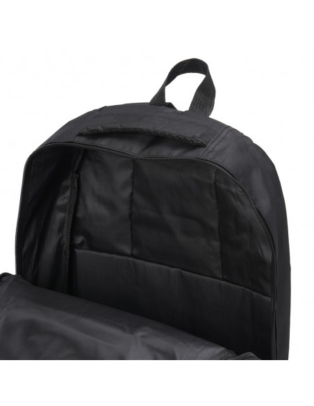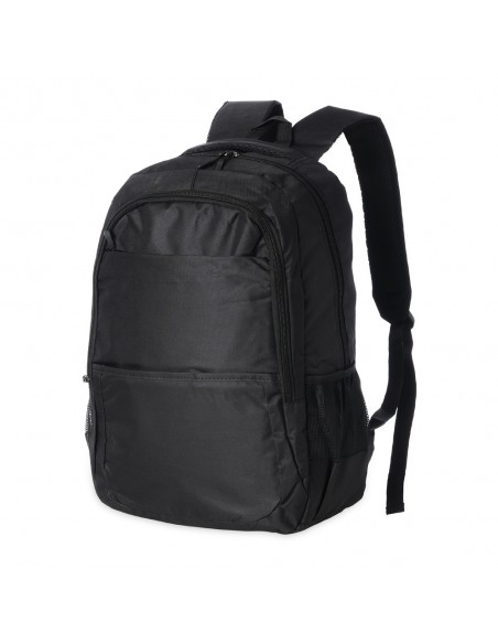Mochila de nylon 27 litros com quatro compartimentos, sendo o principal com bolso para notebook 17,3. Com bolsos laterais telados, a mochila possui duas alças de mãos e alças para as costas com revestimento espumado.