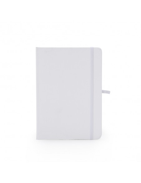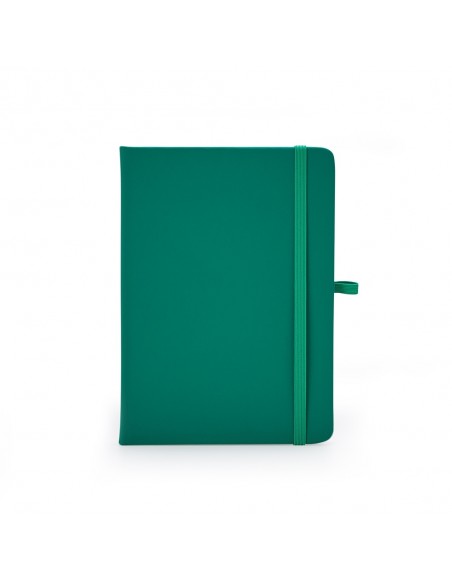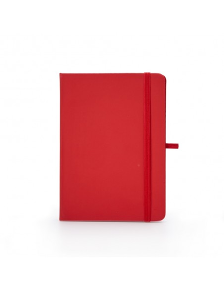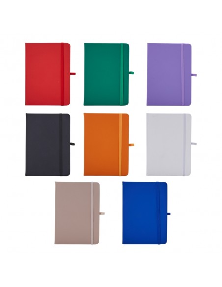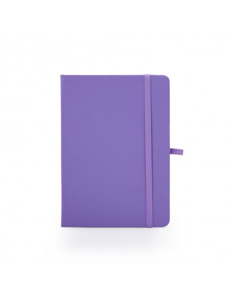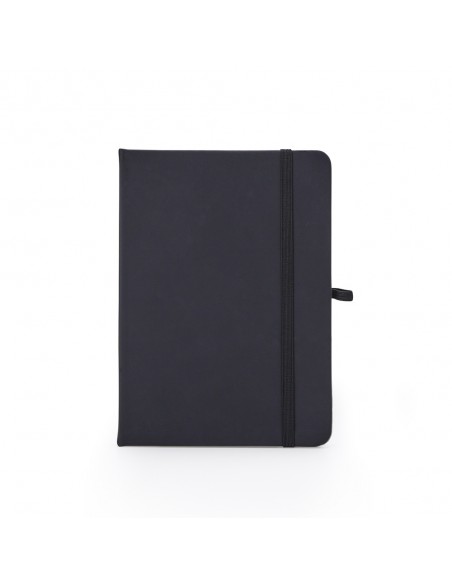 Caderneta emborrachada com suporte para caneta, elástico para lacre e marcador de página em cetim, contém aproximadamente 80 folhas com pauta na cor branca.
