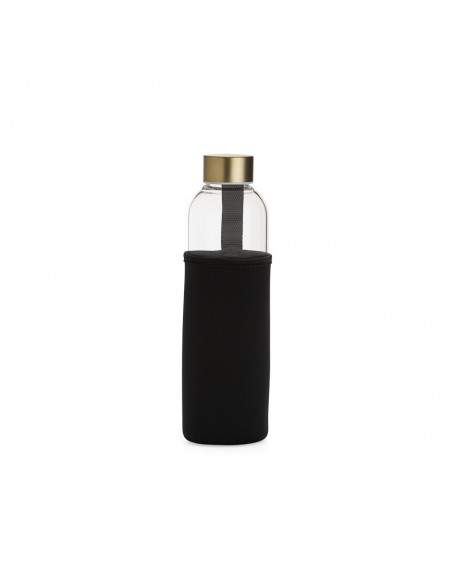 Garrafa de vidro borossilicato com capacidade de 650ml, acompanha capa de neoprene com alça para transporte. Tampa de alumínio.