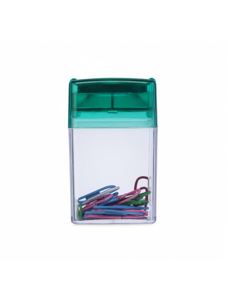 Porta clipes com tampa magnética colorida, acompanham clipes coloridos.