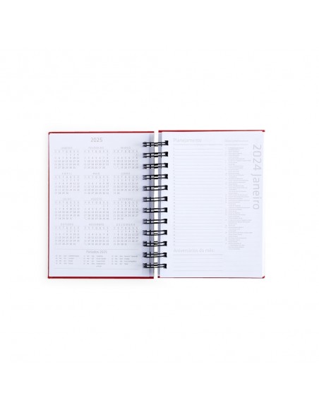 Agenda 2024 com capa emborrachada e wire-o metálico.