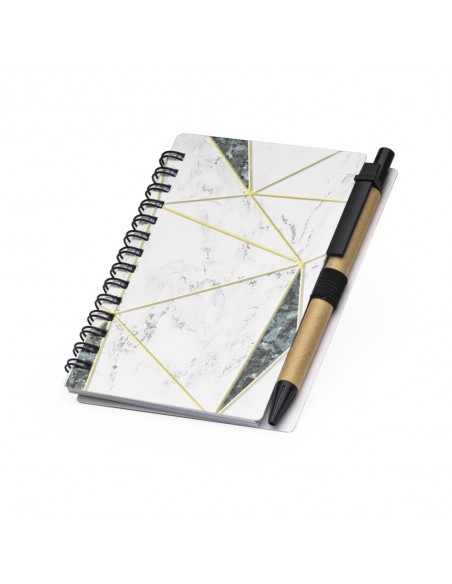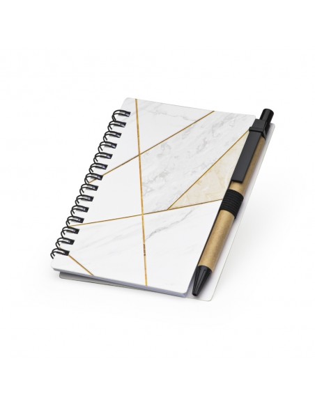 Caderneta tipo moleskine couro sintético, marcador de página em cetim e fita elástica para fechar.