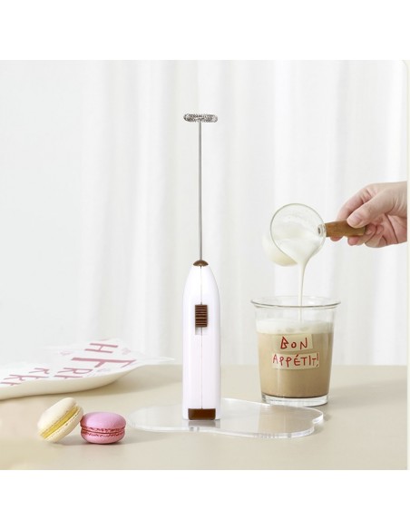 Misturador elétrico portátil. Para o funcionamento do produto necessita de duas pilhas AA (não acompanha).