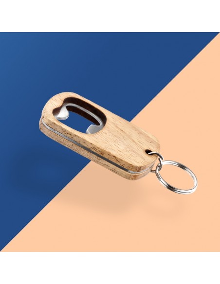 Chaveiro metálico abridor de garrafa em formato de garrafa .