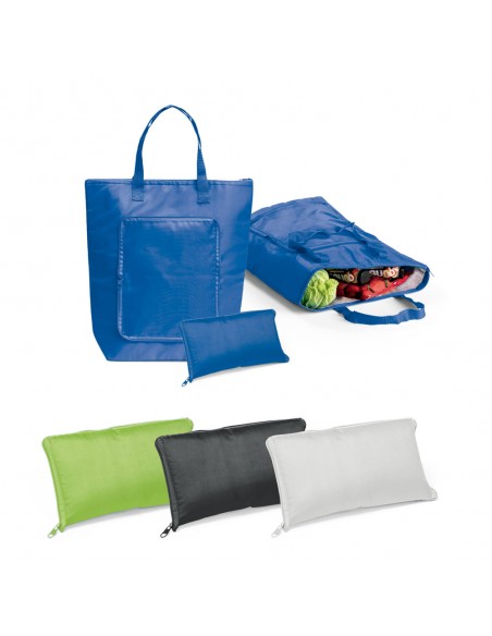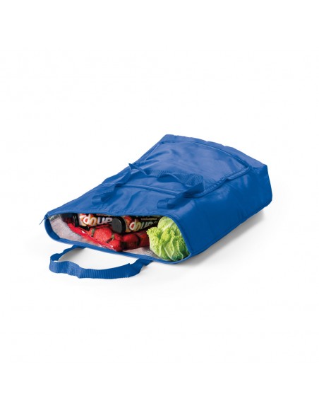 Sacola térmica dobrável em 210D com alças em webbing de 60 cm.