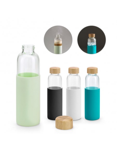 Garrafa de vidro borossilicato com capacidade de 650ml.