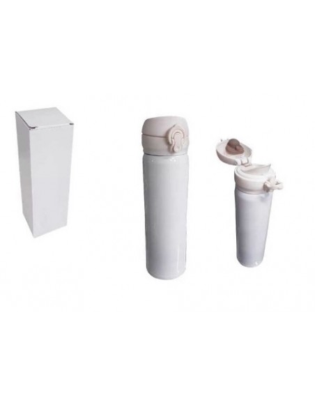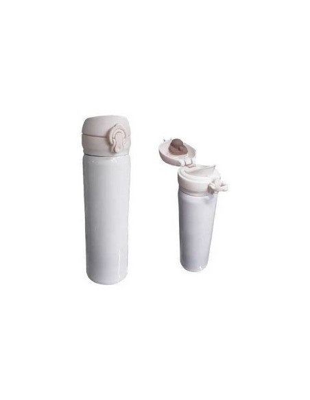 Garrafa térmica de 450ml de metal inteira colorida com botão de abertura prata.