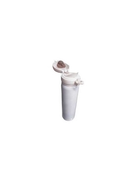 Garrafa térmica em aço inox, com capacidadede até 500ml.
