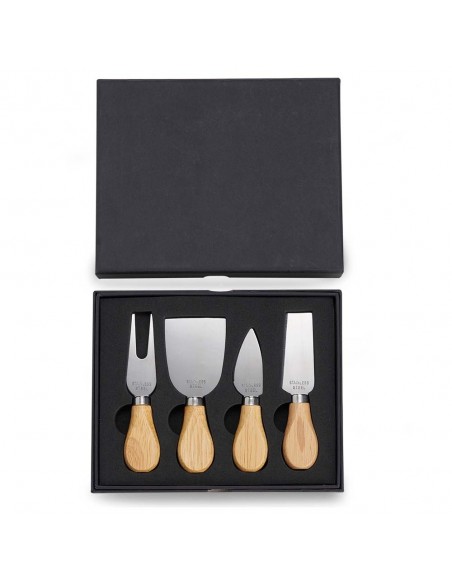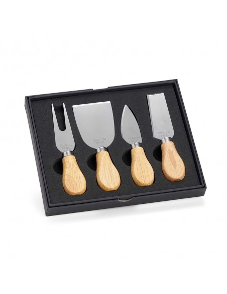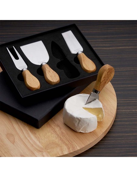 Kit queijo 4 peças em estojo de papelão com berço de espuma.