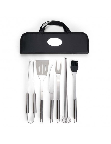 Kit Churrasco 9 Peças em estojo de nylon com alça.