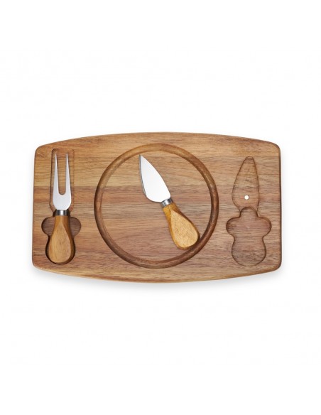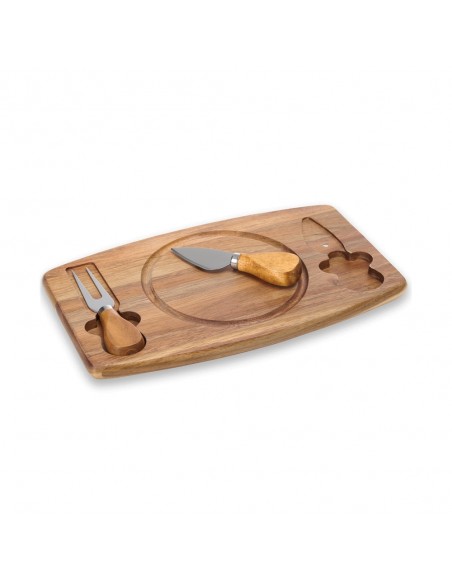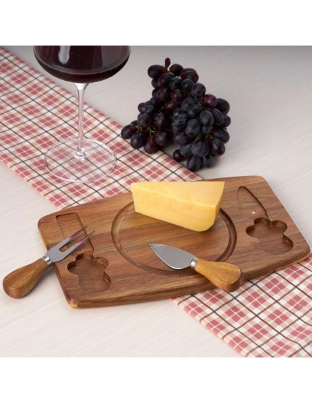 Kit queijo e vinho 9 peças, sendo 1 tabua, 4 espetinhos, 2 taças, 1 abridor de vinho.