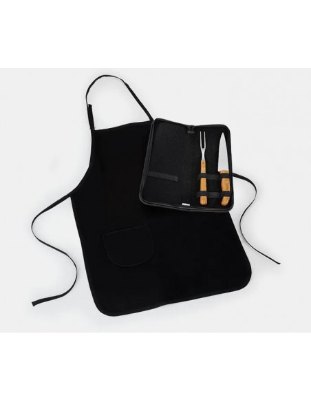 Kit para churrasco; Conta com tábua em Bambu; Faca 7" e garfo em aço Inox/Madeira.