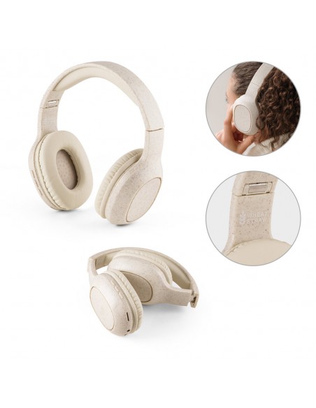 Fone de ouvido dobráveis wireless em fibra de palha de trigo e ABS.
