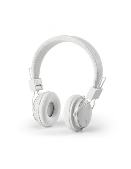 Fone de ouvido dobrável e ajustável em ABS com estrutura almofadada, transmissão sem fios BT v5.0 e leitor de cartões TF. Autonomia aproximada de 4 h. Função para atender chamadas, controle de volume, conexão à playlist do dispositivo móvel e rádio FM.