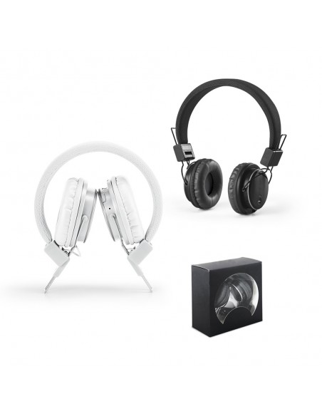 Fone de ouvido dobrável e ajustável em ABS com estrutura almofadada.