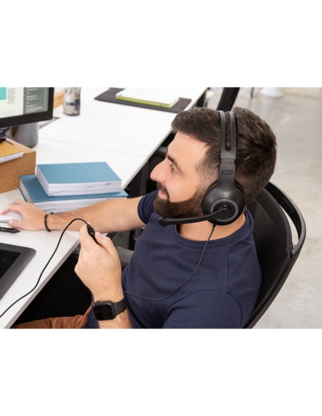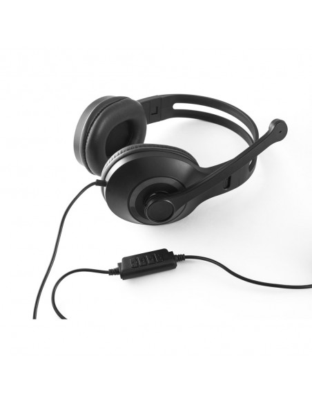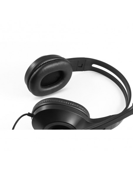 Fone de ouvido dobrável e ajustável em ABS com estrutura almofadada.